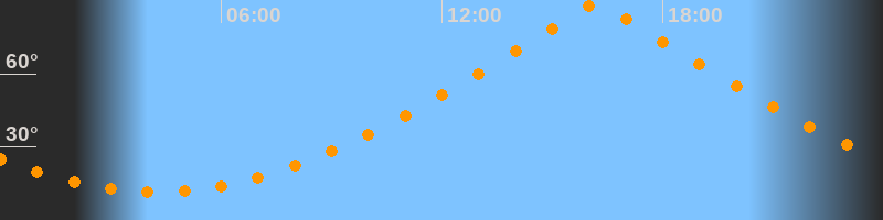 | Höchster Stand (Kulmination) | 16:12 Uhr (h = 89,7°) |