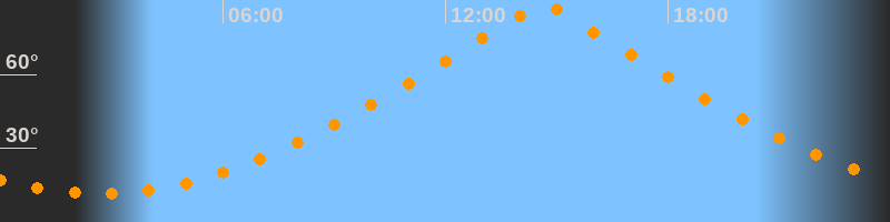 | Höchster Stand (Kulmination) | 14:38 Uhr (h = 89,7°) |