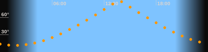 | Höchster Stand (Kulmination) | 13:43 Uhr (h = 89,7°) |