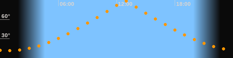 | Höchster Stand (Kulmination) | 12:52 Uhr (h = 89,7°) |