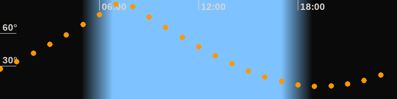 | Höchster Stand (Kulmination) | 07:21 Uhr (h = 89,7°) |