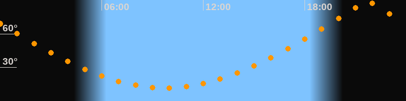 | Höchster Stand (Kulmination) | 21:43 Uhr (h = 89,7°) |