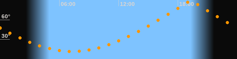 | Höchster Stand (Kulmination) | 19:18 Uhr (h = 89,7°) |