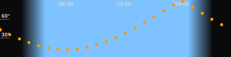| Höchster Stand (Kulmination) | 18:47 Uhr (h = 89,7°) |