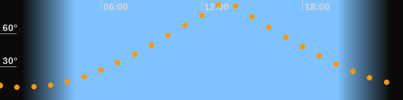 | Höchster Stand (Kulmination) | 13:24 Uhr (h = 89,7°) |