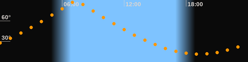| Höchster Stand (Kulmination) | 07:18 Uhr (h = 89,7°) |
