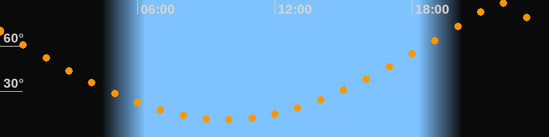 | Höchster Stand (Kulmination) | 21:48 Uhr (h = 89,7°) |