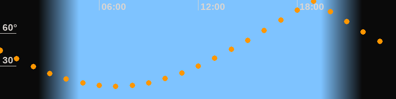 | Höchster Stand (Kulmination) | 18:55 Uhr (h = 89,7°) |