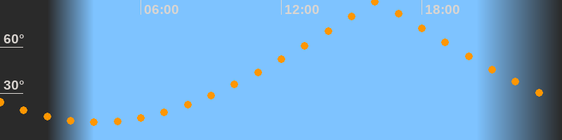 | Höchster Stand (Kulmination) | 16:06 Uhr (h = 89,7°) |