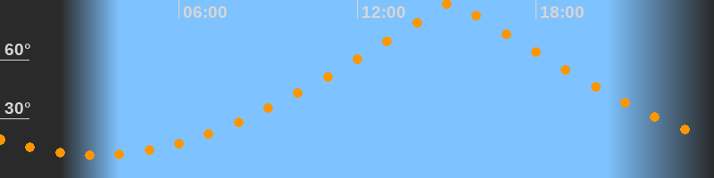 | Höchster Stand (Kulmination) | 15:11 Uhr (h = 89,7°) |