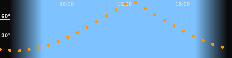 | Höchster Stand (Kulmination) | 13:37 Uhr (h = 89,7°) |