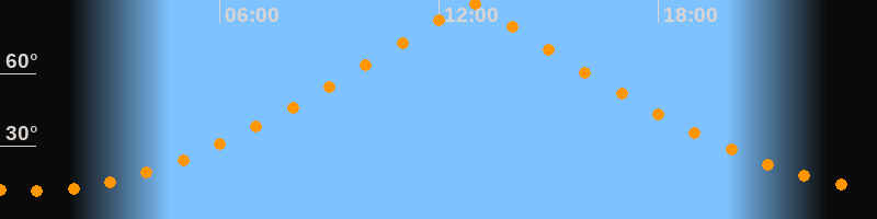 | Höchster Stand (Kulmination) | 12:50 Uhr (h = 89,7°) |