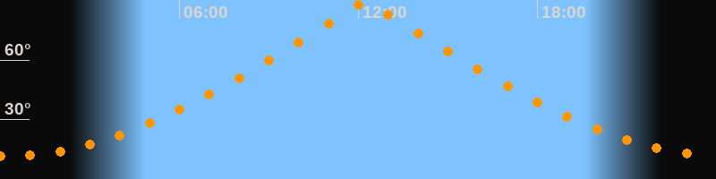 | Höchster Stand (Kulmination) | 12:14 Uhr (h = 89,7°) |