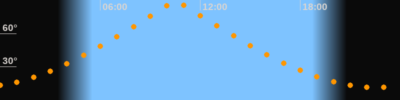 | Höchster Stand (Kulmination) | 10:32 Uhr (h = 89,7°) |