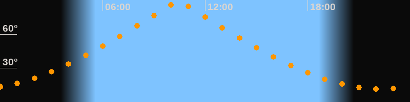 | Höchster Stand (Kulmination) | 10:24 Uhr (h = 89,7°) |