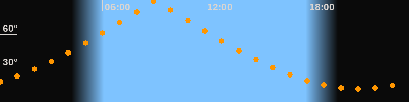 | Höchster Stand (Kulmination) | 09:06 Uhr (h = 89,7°) |