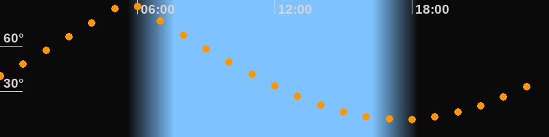 | Höchster Stand (Kulmination) | 05:33 Uhr (h = 89,7°) |