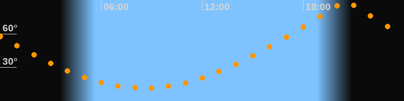 | Höchster Stand (Kulmination) | 20:31 Uhr (h = 89,7°) |