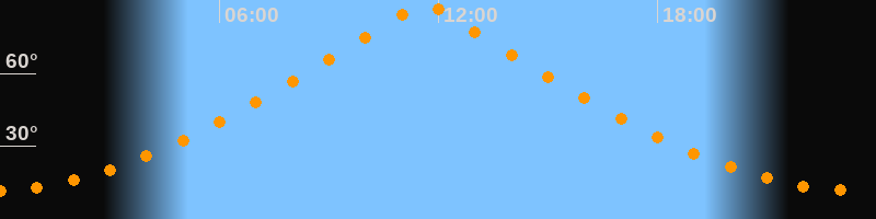 | Höchster Stand (Kulmination) | 11:36 Uhr (h = 89,7°) |