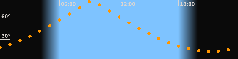 | Höchster Stand (Kulmination) | 09:14 Uhr (h = 89,7°) |