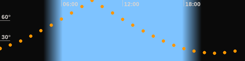 | Höchster Stand (Kulmination) | 08:59 Uhr (h = 89,7°) |