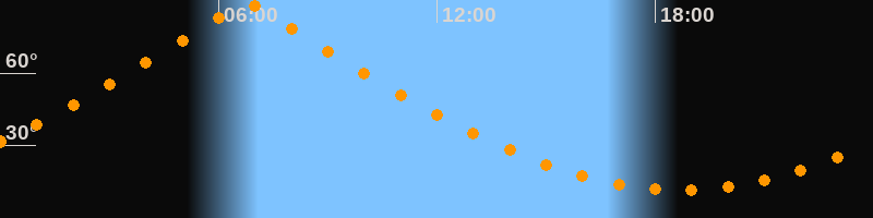 | Höchster Stand (Kulmination) | 06:45 Uhr (h = 89,7°) |