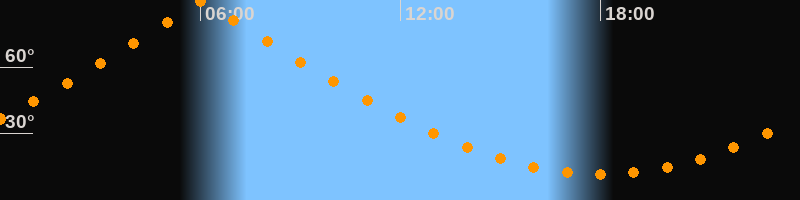 | Höchster Stand (Kulmination) | 06:02 Uhr (h = 89,7°) |