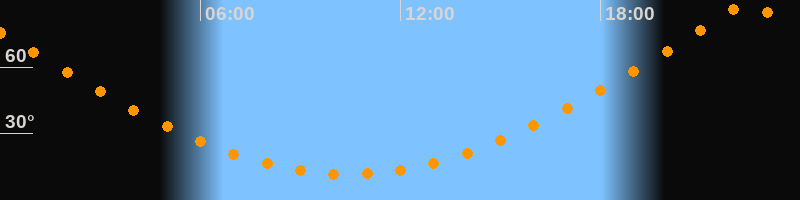 | Höchster Stand (Kulmination) | 22:26 Uhr (h = 89,7°) |