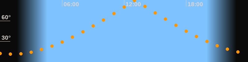 | Höchster Stand (Kulmination) | 13:03 Uhr (h = 89,7°) |