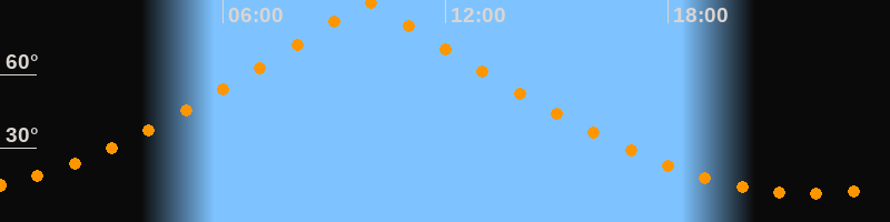 | Höchster Stand (Kulmination) | 09:55 Uhr (h = 89,7°) |