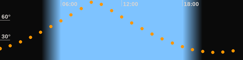 | Höchster Stand (Kulmination) | 09:19 Uhr (h = 89,7°) |