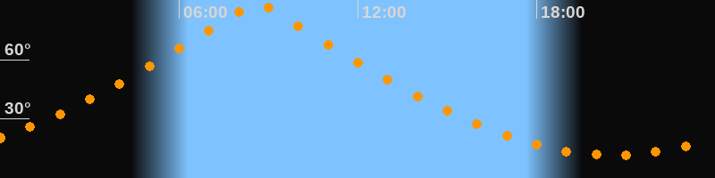 | Höchster Stand (Kulmination) | 08:36 Uhr (h = 89,7°) |
