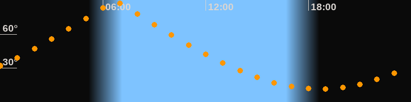 | Höchster Stand (Kulmination) | 06:42 Uhr (h = 89,7°) |