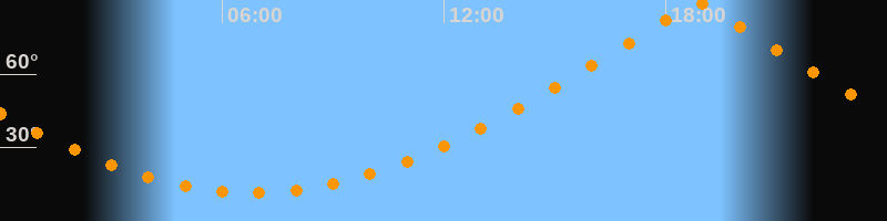 | Höchster Stand (Kulmination) | 18:50 Uhr (h = 89,7°) |