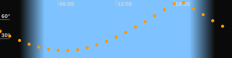 | Höchster Stand (Kulmination) | 18:35 Uhr (h = 89,7°) |