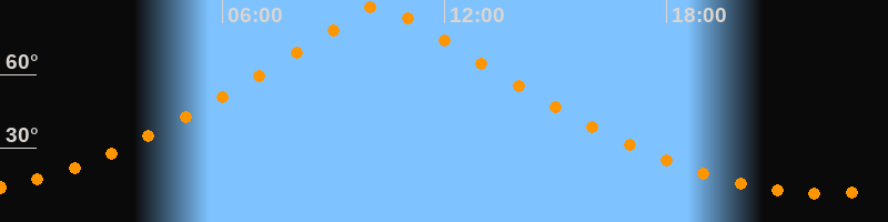 | Höchster Stand (Kulmination) | 10:15 Uhr (h = 89,7°) |