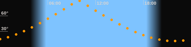 | Höchster Stand (Kulmination) | 09:52 Uhr (h = 89,7°) |