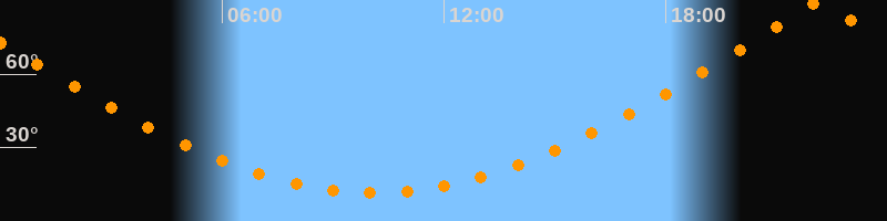 | Höchster Stand (Kulmination) | 22:08 Uhr (h = 89,7°) |