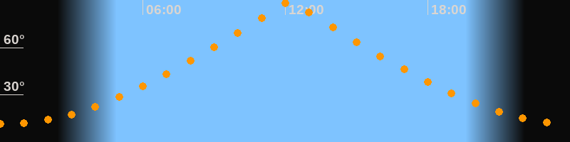 | Höchster Stand (Kulmination) | 12:10 Uhr (h = 89,7°) |