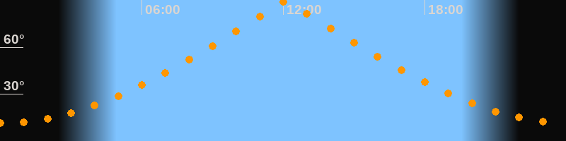 | Höchster Stand (Kulmination) | 12:06 Uhr (h = 89,7°) |