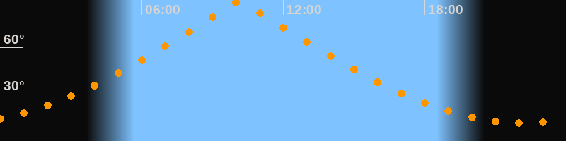 | Höchster Stand (Kulmination) | 10:08 Uhr (h = 89,7°) |