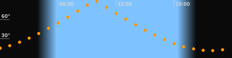 | Höchster Stand (Kulmination) | 09:49 Uhr (h = 89,7°) |