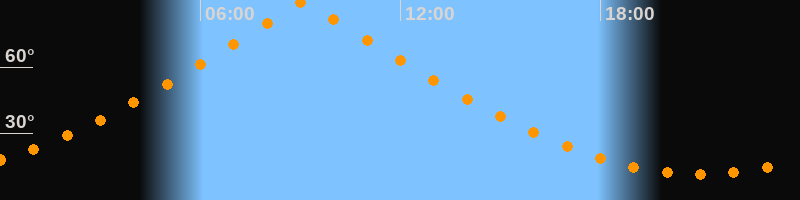 | Höchster Stand (Kulmination) | 09:05 Uhr (h = 89,7°) |