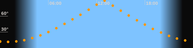| Höchster Stand (Kulmination) | 12:54 Uhr (h = 89,7°) |