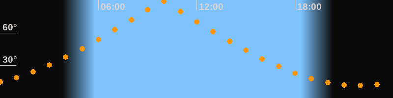 | Höchster Stand (Kulmination) | 09:54 Uhr (h = 89,7°) |