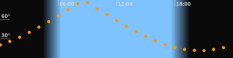 | Höchster Stand (Kulmination) | 08:35 Uhr (h = 89,7°) |