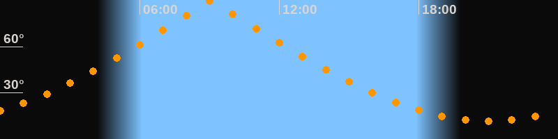 | Höchster Stand (Kulmination) | 09:03 Uhr (h = 89,7°) |