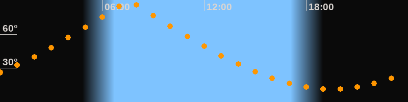 | Höchster Stand (Kulmination) | 07:33 Uhr (h = 89,7°) |