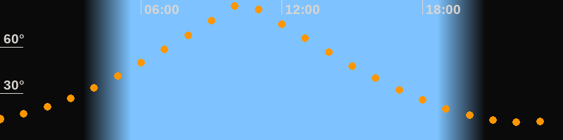 | Höchster Stand (Kulmination) | 10:23 Uhr (h = 89,7°) |