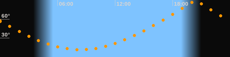 | Höchster Stand (Kulmination) | 20:23 Uhr (h = 89,7°) |